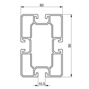 Anodeeritud alumiiniumprofiil 90×60 mm, laojääk 52,5 m (9×6 m).Sobib konstruktsioonide ja raamide ehituseks (nt uksed, showroom’id, messistendid jpm)